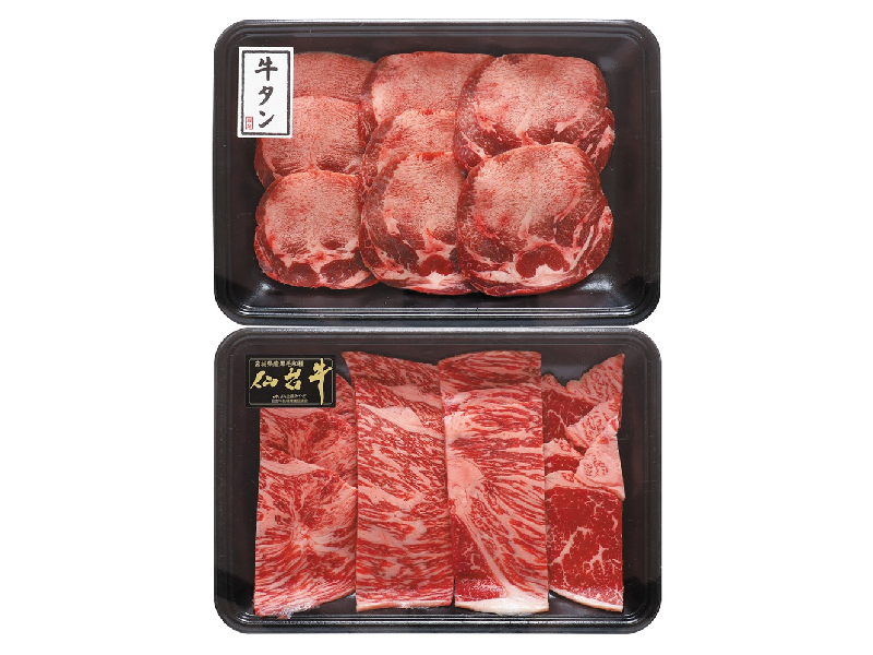 ブランド牛の仙台牛と、仙台名物牛タンの焼肉セットです。季節の野菜やきのこなどをご用意の上、塩やお好みのたれでお召し上がりください。