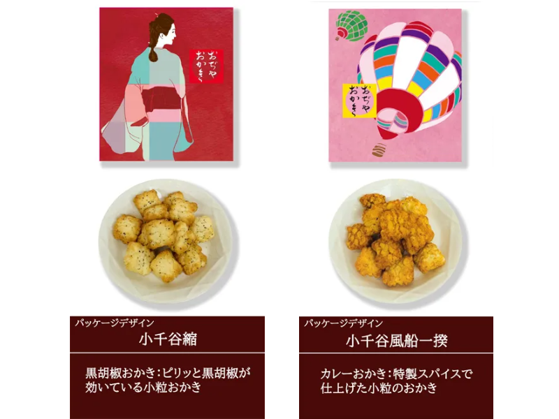 竹内製菓こだわりの「あられ・おかき」から厳選したものを、小千谷を代表する名産をモチーフにしたパッケージで包みました。見た目も華やかな米菓の詰め合わせです。