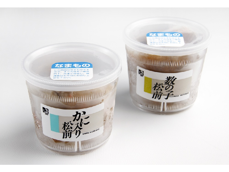 昆布とイカで仕上げた北海道の郷土料理「松前漬」に数の子を加えた「数の子松前漬」とカニを入れた「かに入松前漬け」のセットです。
