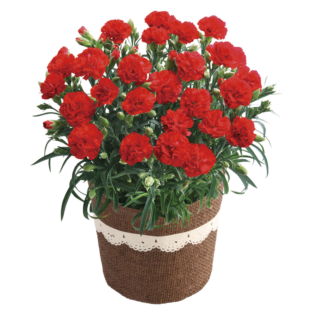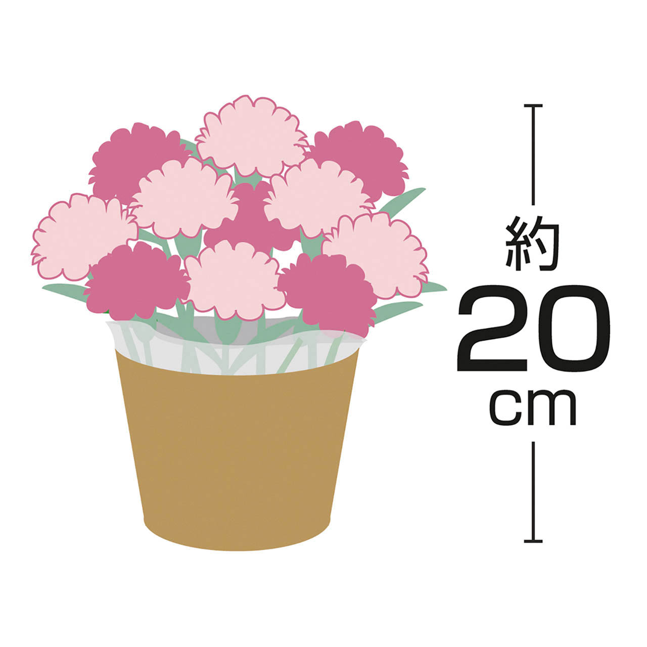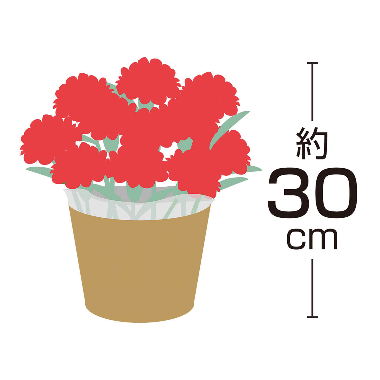 内容物:カーネーション5号1鉢、バスケットもしくはラッピングバッグ、取扱いの手引き